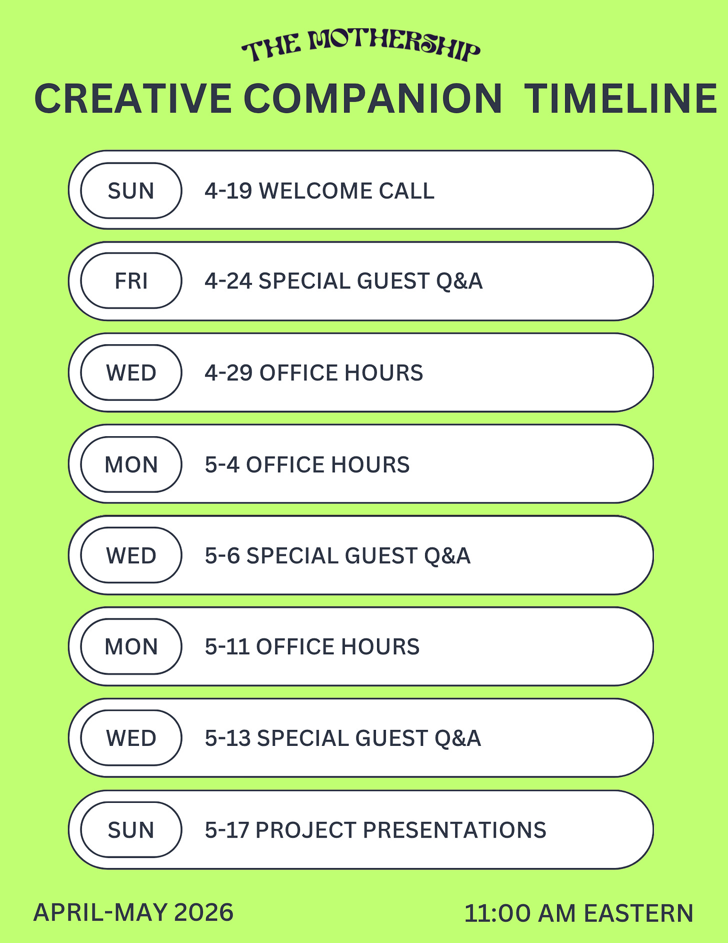 Your project will be held with clarity, respect, and momentum by The Mothership creators, Amy Keller and Jeana Donovan, alongside a private community committed to creation.